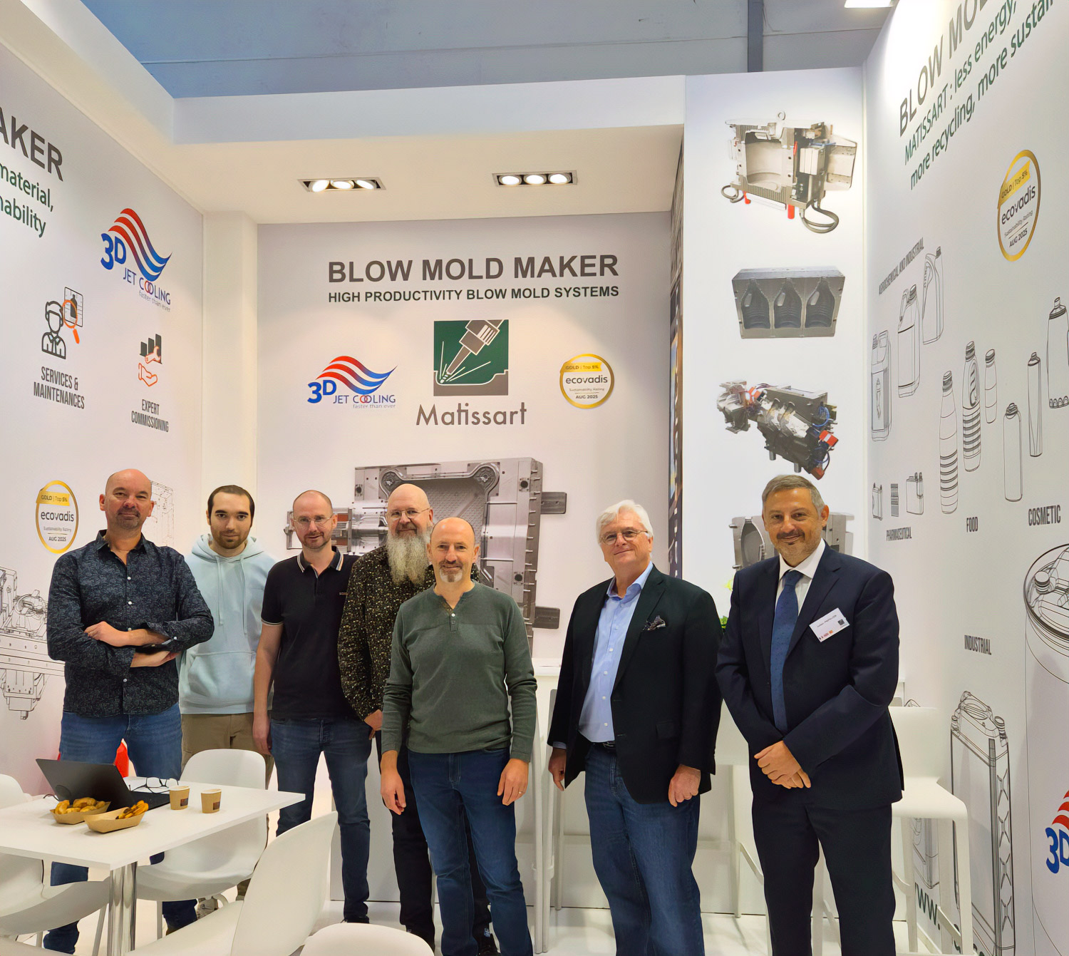 MATISSART conçoit et fabrique des moules d’extrusion-soufflage à haute productivité et de soufflage de qualité pour l’industrie de l’Emballage et de la Pièce Technique.